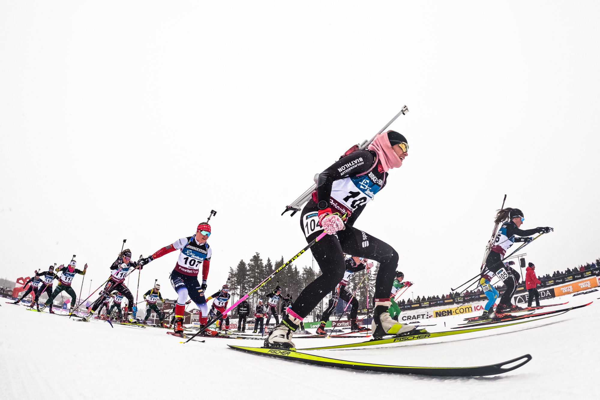 Masstart: 30 deltagare från top 30 av den nationella rankingen. Damer tävlar 12,5 km och herrar tävlar 15 km och skjuter 4 gånger (ligg + ligg + stå + stå). Missat skott innebär en straffrunda på 150 m. Först i mål vinner. (möjligt att starta med upp till 60 aktiva och då åker herrar 6 x 2 km, damer 6 x 1,5 km)